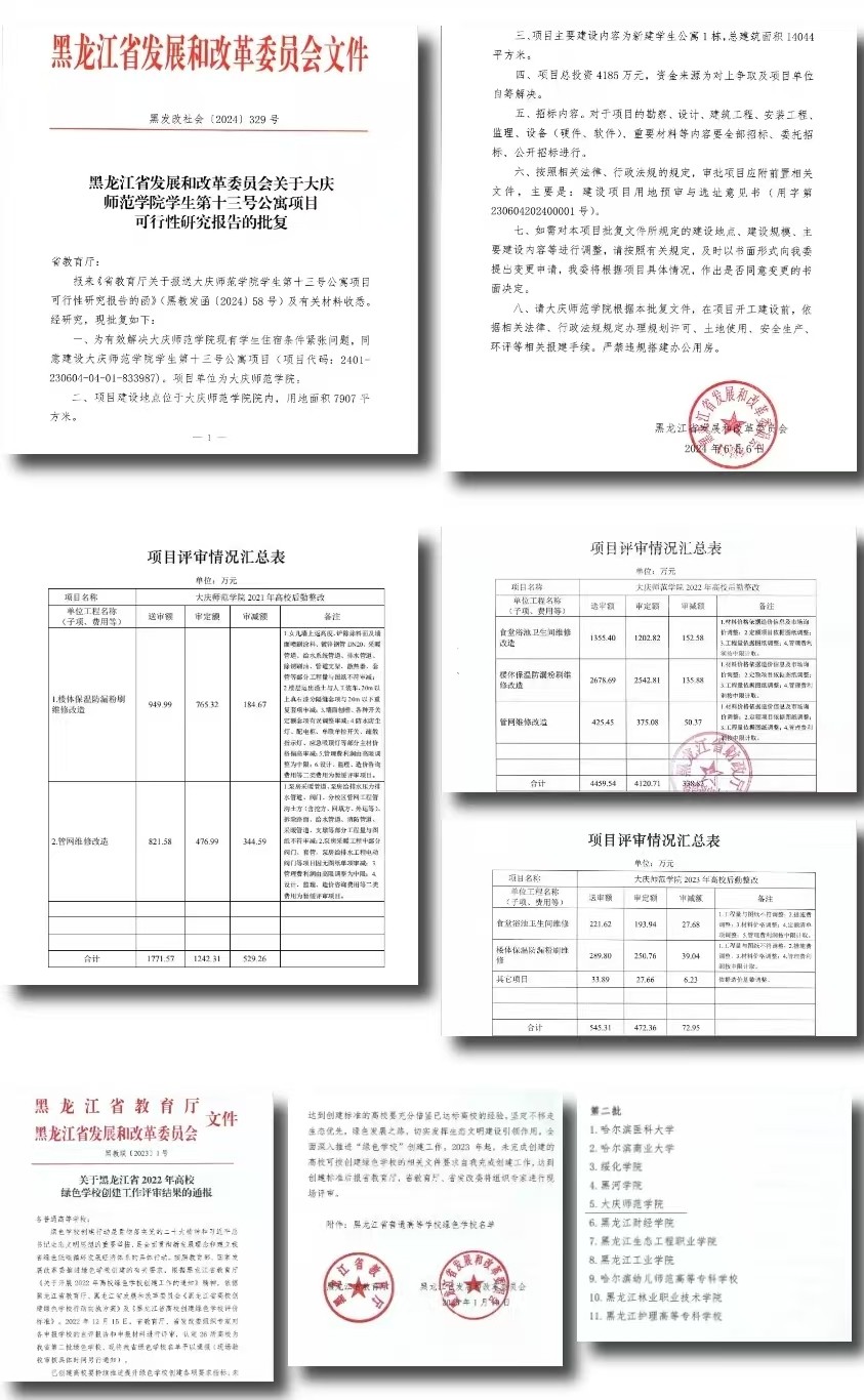 一是学生第十一号、第十二号公寓项目投入使用,完成学生第十三号公寓项目立项批复,协调大庆油田投入8200余万元用于校园基础设施改造,维修场地道路6.3万平方米,维修改造楼宇32栋,维修地下管网2.38万米,累计获批高校后勤整改项目18项,累计金额7000余万元,校园面貌焕然一新;二是对学生餐厅及教工餐厅进行整体装修,增设就餐座位300余个,加装门斗、更新桌椅、增设舞台、LED电子屏、空调、自动感应消毒筷子机等设备,推出公益厨房,增加旋转小火锅等备受师生喜爱餐品20余种,省内高校第一批完成“互联网+明厨亮灶”工程,实现校园免费开水服务,调整食用油品牌,全部更换一线品牌(金龙鱼、北大荒),米面大量使用东北大米、五得利面粉,严格把控食材品质,就餐环境职工餐厅和学生餐厅就餐率逐年提高;三是强化物业服务,实现“绿色校园”创建,学校制定校园绿化方案,采用喷灌式浇注方式进行植被养护,种植多年生草本植物20余种,新建生物工程学院植物示范园、美术与设计学院写生园,校园绿化面积不断增加,校园环境进一步美化,2022年获省“绿色学校”称号;四是开源节流,增强学校“造血功能”,2024年通过大庆市“节水型高校”创建评审,每年综合能耗指标控制在1000吨标煤以下,浴池采用空气能运营,提高国有资产使用效率,将原锅炉房等闲置房屋、场地通过政府采购平台招租,年租金收入从2019年的110万元增加到2024年的656.89万元。